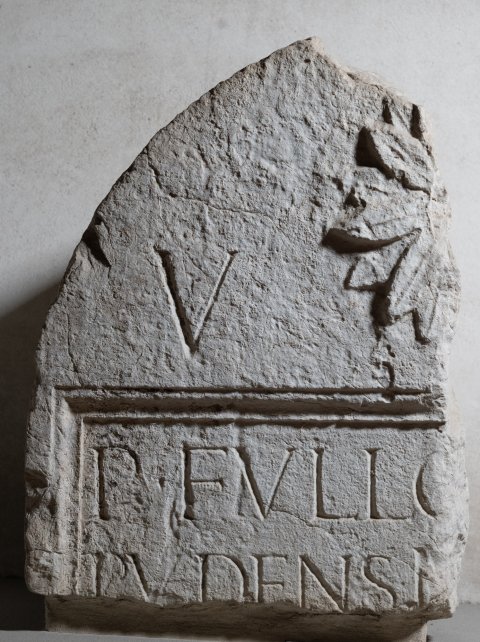 - V(ivus) [f(ecit)] / P(ublius) Fullo[nius --- f(ilius?)] / Pudens I[IIIIIvir Aug(ustalis?) ---
