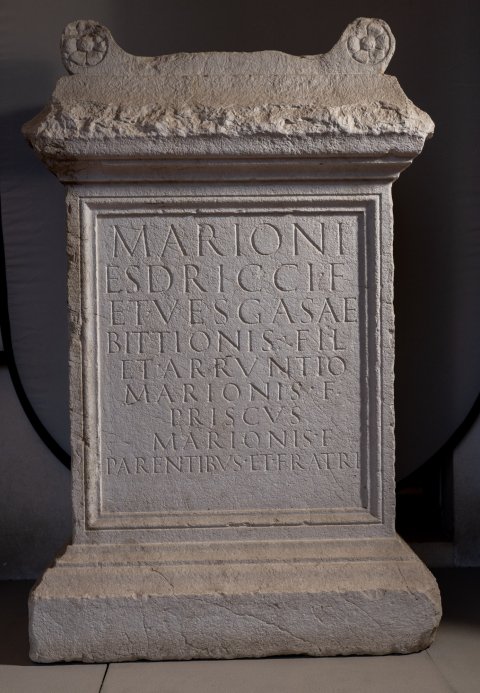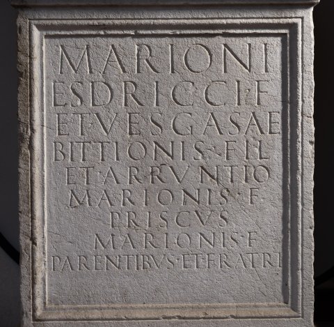 - Marioni / Esdricci f(ilio) / et Vesgasae / Bittionis fil(iae) / et Arruntio / Marionis f(ilio) / Priscus / Marionis f(ilius) / parentibus et fratri