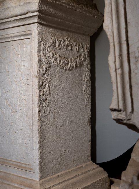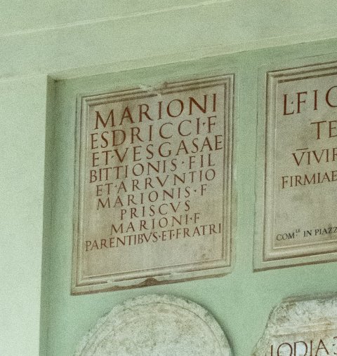 - Kreuzgang (gemalte Replik der Inschrift im Capitolium)