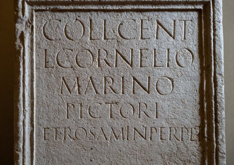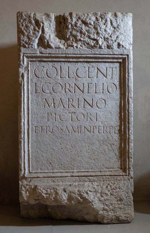 - Coll(egium) cent(onariorum) / L(ucio) Cornelio / Marino / pictori / et rosam in perpet(uum)