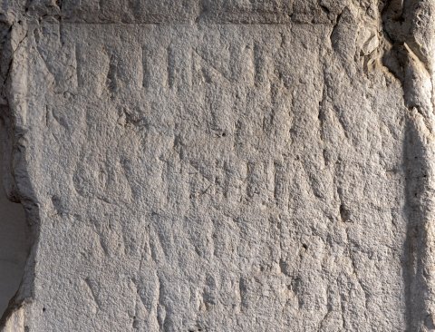 - stark bestoßen, Inschrift verwaschen