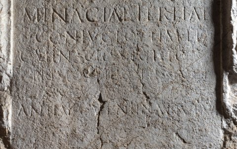- V(ivus) f(ecit) / Secundus Sp(uri) / Strabo / sibi et / Minaciae Tertiae / coniugi optim(ae) et C(aio) Minacio Vegeto / Primo filio piissimo / AN++++++
