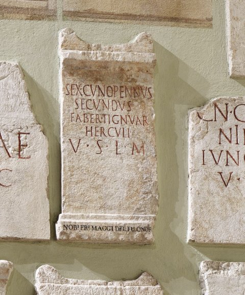 - Sex(tus) Cunopennus / Secundus / faber tignuar(ius) / Herculi / v(otum) s(olvit) l(ibens) m(erito)