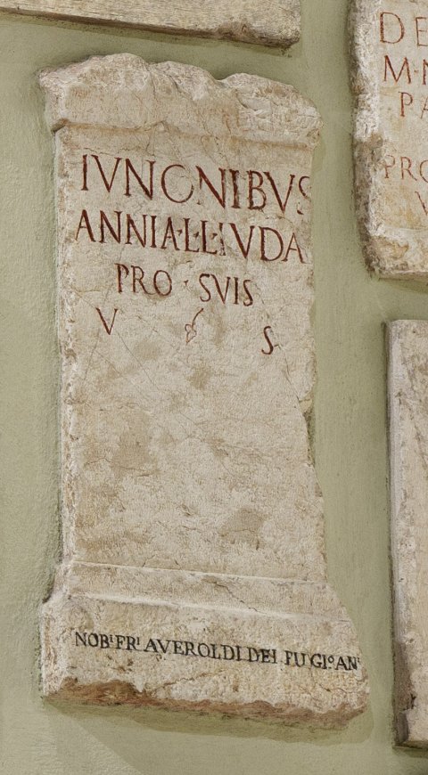 - Iunonibus / Annia L(uci) l(iberta) Iuda / pro suis / v(otum) s(olvit)