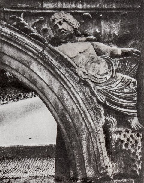 - Mythische Figuren: gelagerte Flussgötter. Relief auf dem Schlussstein nicht erhalten.