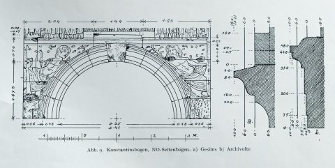 - H. P. L’Orange - A. von Gerkan: Der spätantike Bildschmuck des Konstantinsbogens 1939, 148. 154; M. L. Conforto u. a., Adriano e Costantino. Le due fasi dell'arco nella Valle del Colosseo. Mailand 2001