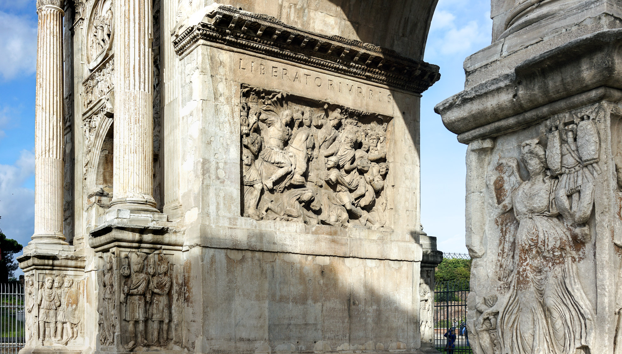34031 Relief im Hauptdurchgang des Konstantinsbogens: Trajan im Kampf gegen Daker