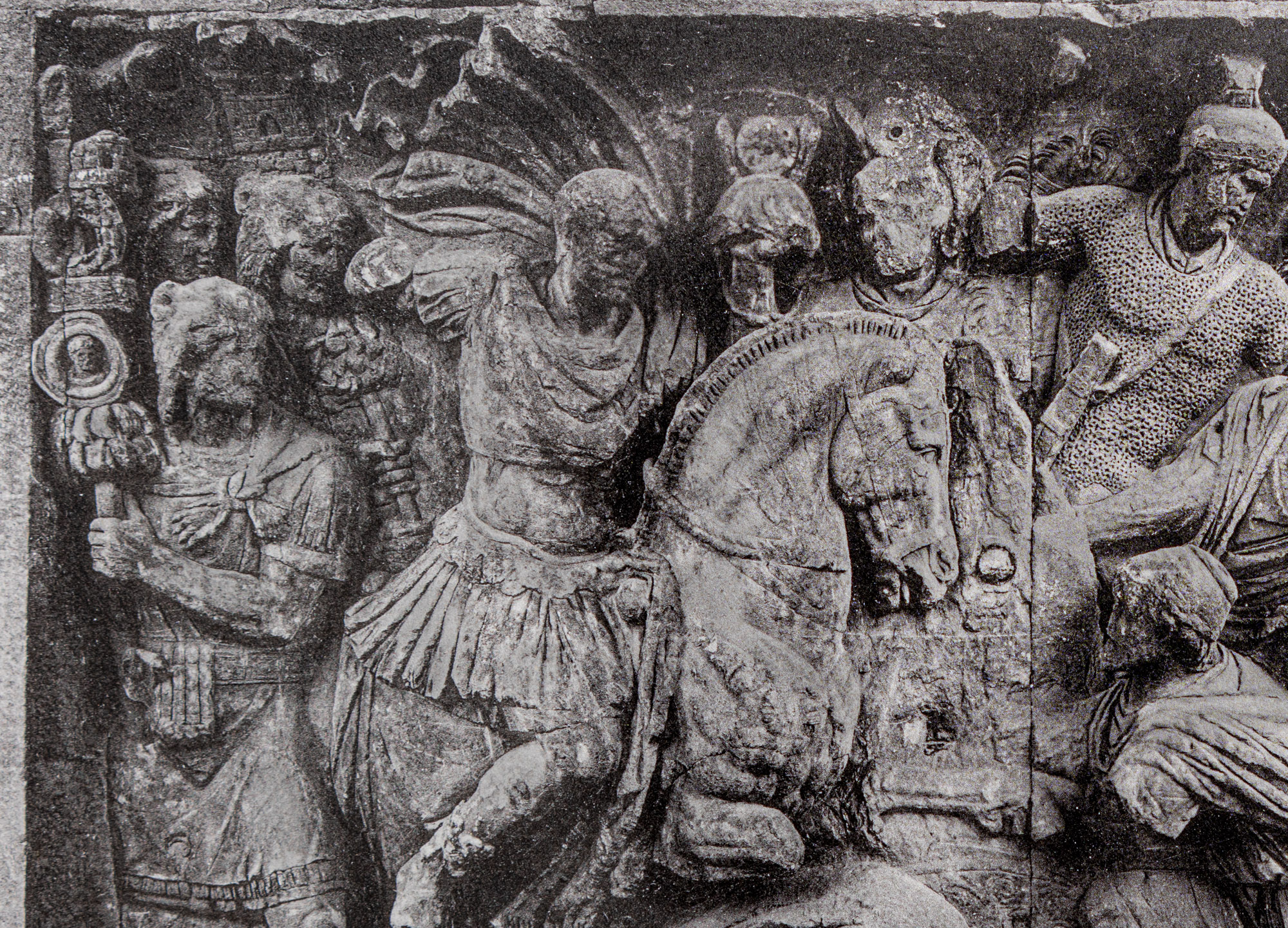 34031 Relief im Hauptdurchgang des Konstantinsbogens: Trajan im Kampf gegen Daker