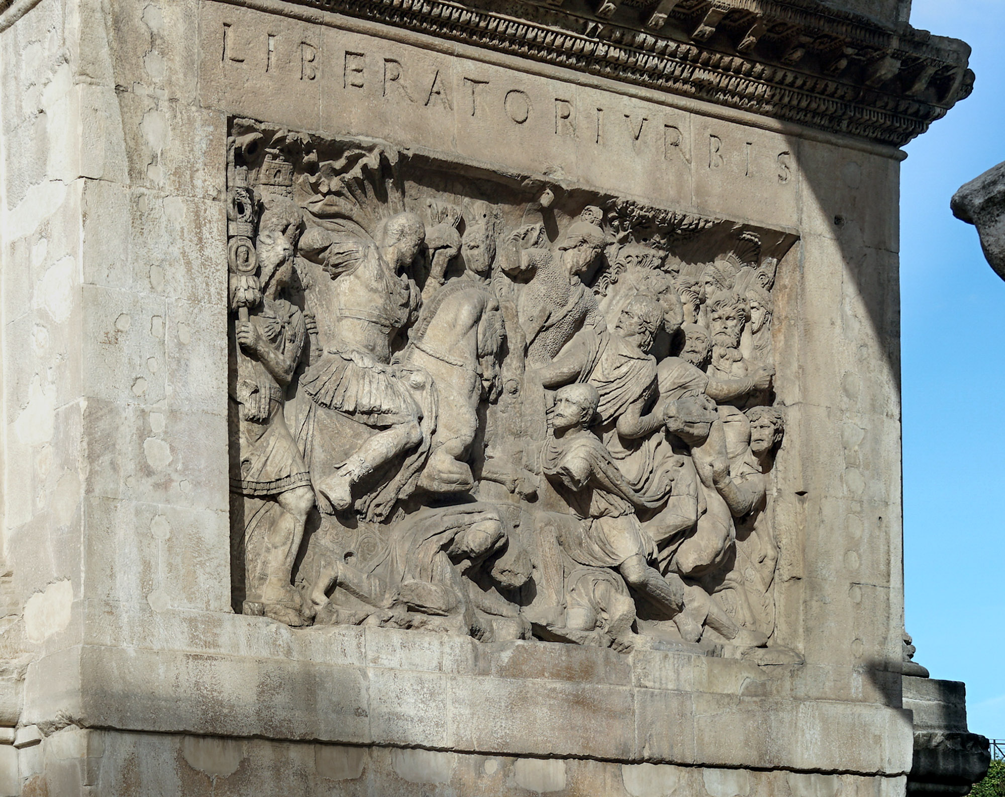 34031 Relief im Hauptdurchgang des Konstantinsbogens: Trajan im Kampf gegen Daker