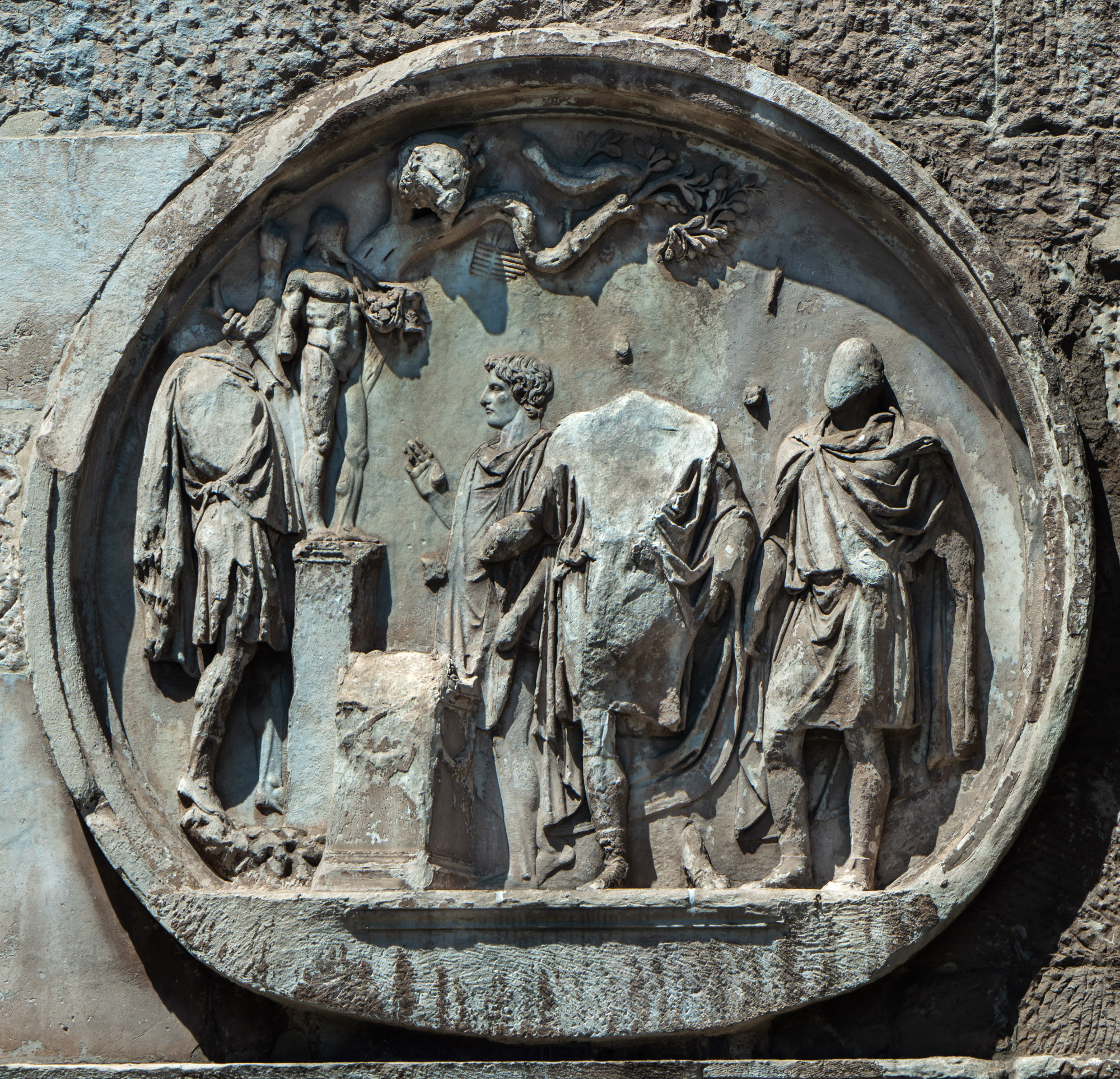 34044 Hadrianischer Tondo auf der Südseite des Konstantinsbogens: Opfer für Silvanus