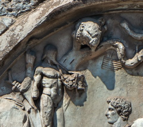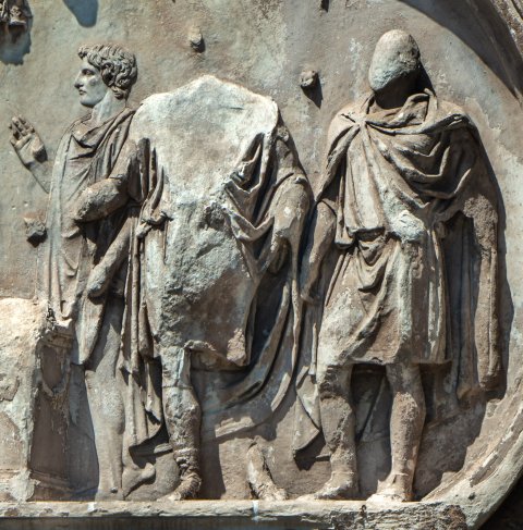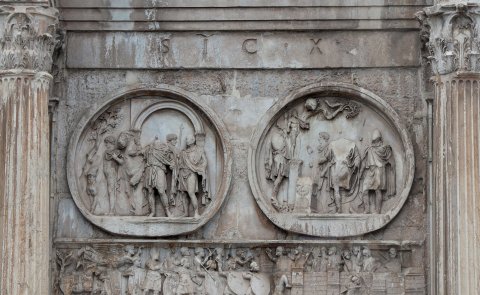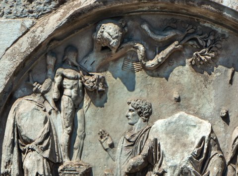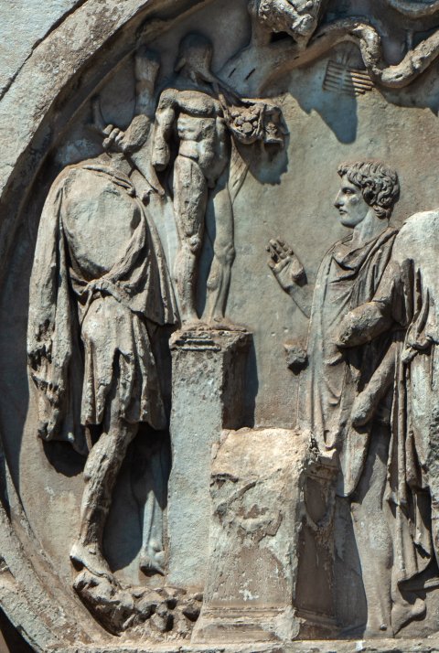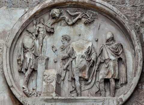 34044 Hadrianischer Tondo auf der Südseite des Konstantinsbogens: Opfer für Silvanus