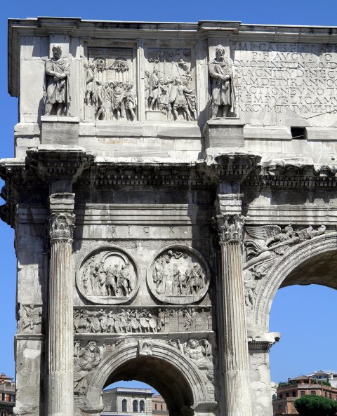 - H. P. L’Orange - A. von Gerkan: Der spätantike Bildschmuck des Konstantinsbogens 1939, 161 ff.; G. Koeppel: Die historischen Reliefs der römischen Kaiserzeit IV. In: Bonner Jahrbücher 186, 1986, 1–90; A. Schmidt-Colinet, in: Fremde Zeiten. Festschrift J. Borchhardt 1996, 261 ff.; M. L. Conforto u. a., Adriano e Costantino. Le due fasi dell'arco nella Valle del Colosseo. Mailand 2001; P. Pray Bober - R. Rubinstein, Renaissance artists and antique sculpture, 2. Aufl. 2010, 232 nr. 182e-vi