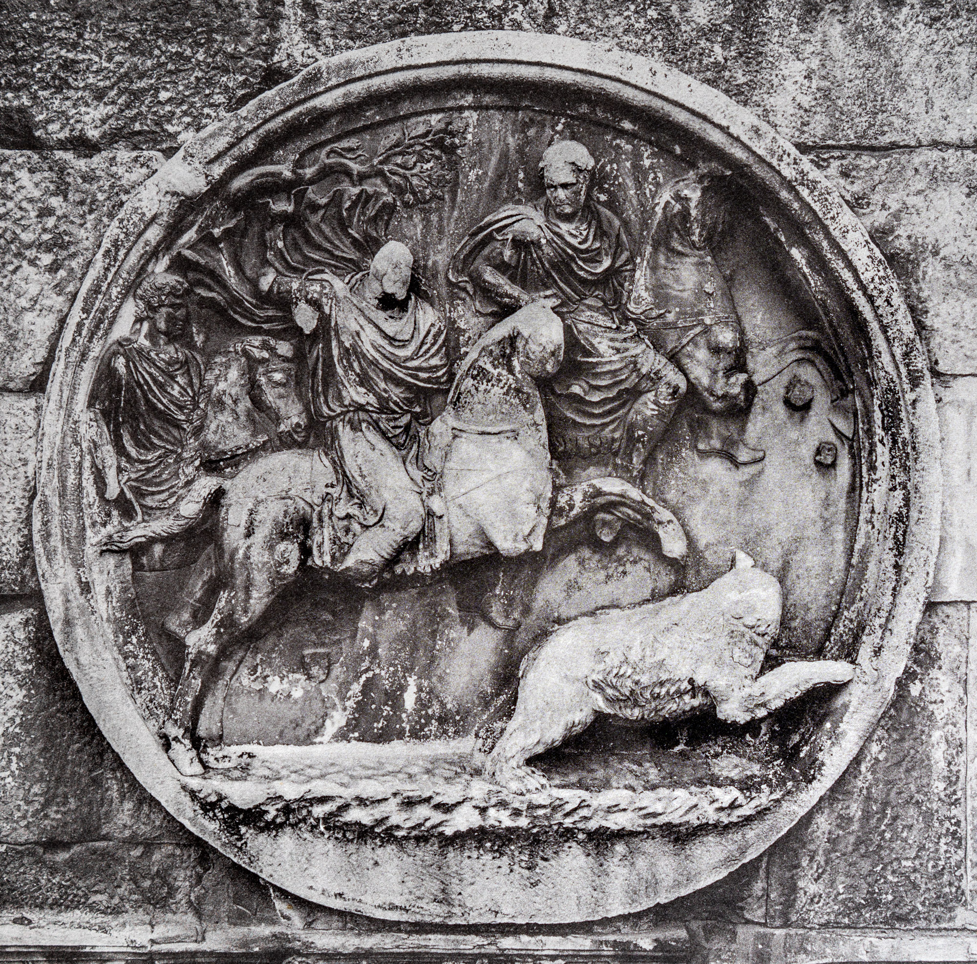 34045 Hadrianischer Tondo auf der Südseite des Konstantinsbogens: Bärenjagd