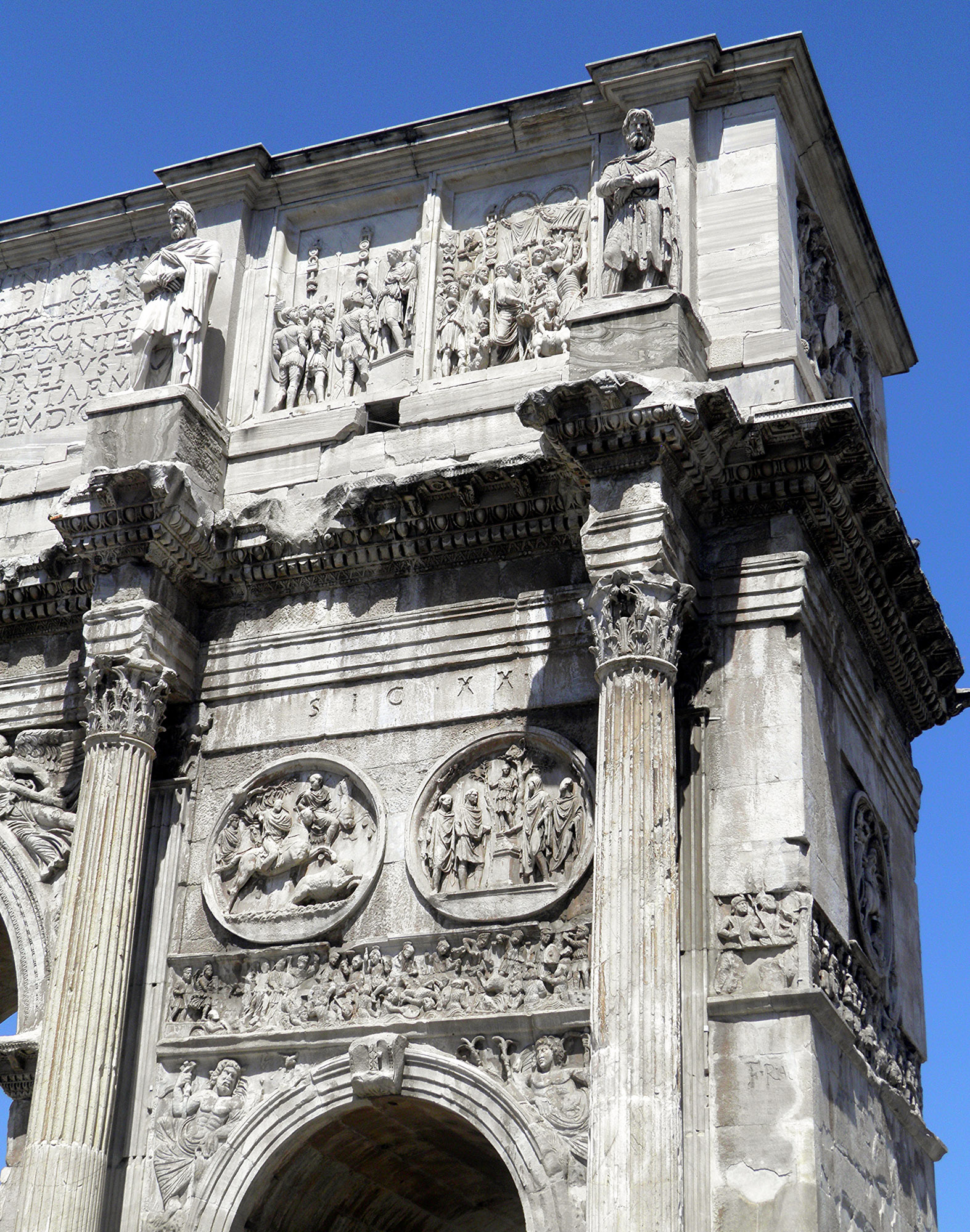 34045 Hadrianischer Tondo auf der Südseite des Konstantinsbogens: Bärenjagd