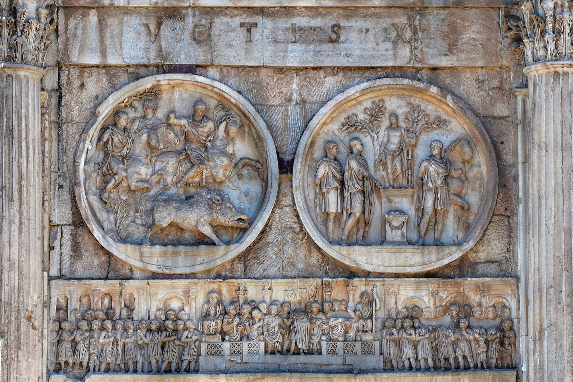 34047 Hadrianischer Tondo auf der Nordseite des Konstantinsbogens: Eberjagd
