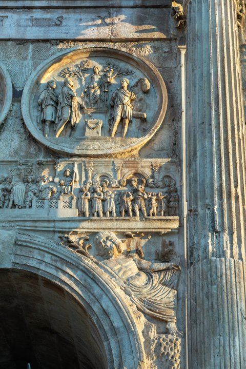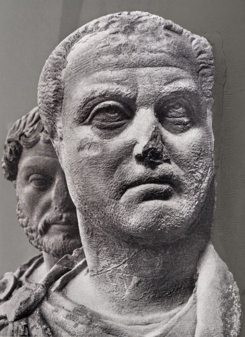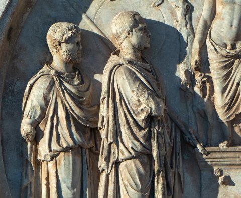 - Reliefteile abgebr., Kopf des Hadrian durch den des Licinius ersetzt