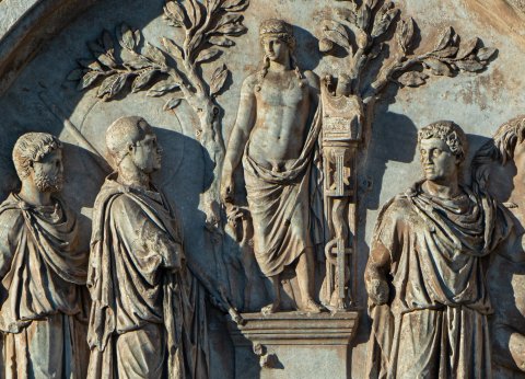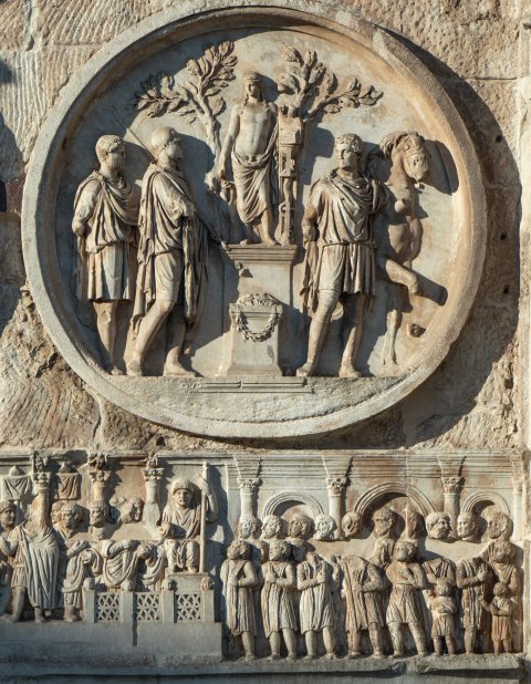 34048 Hadrianischer Tondo auf der Nordseite des Konstantinsbogens: Opfer für Apollo