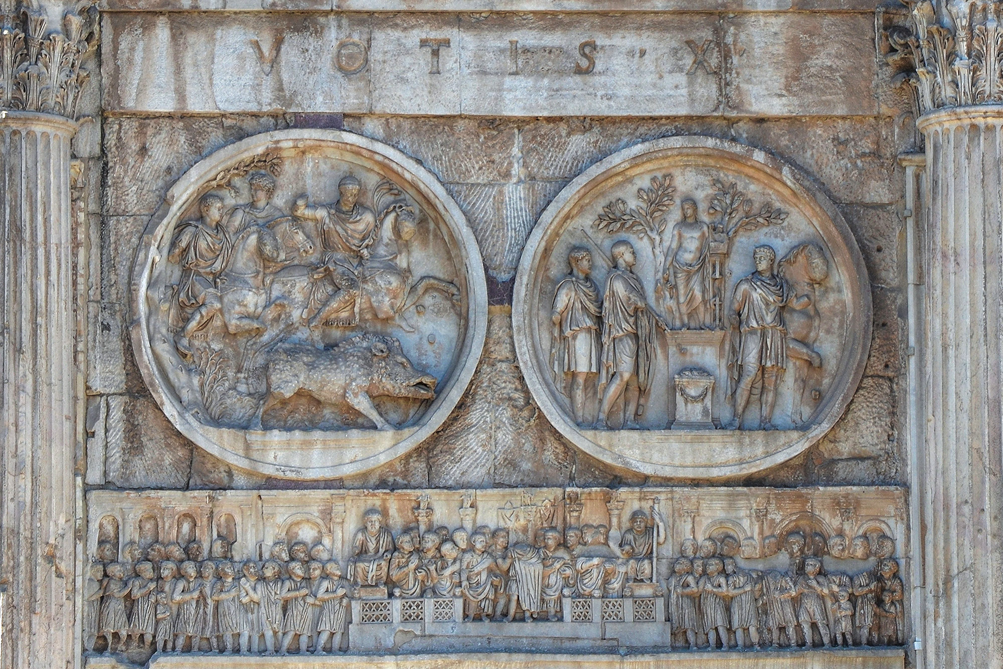 34048 Hadrianischer Tondo auf der Nordseite des Konstantinsbogens: Opfer für Apollo