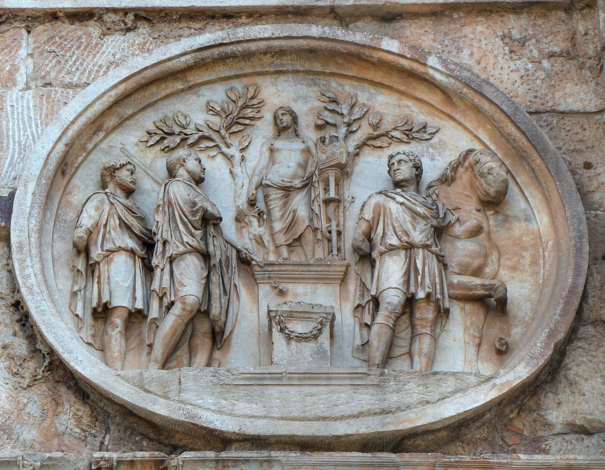 34048 Hadrianischer Tondo auf der Nordseite des Konstantinsbogens: Opfer für Apollo