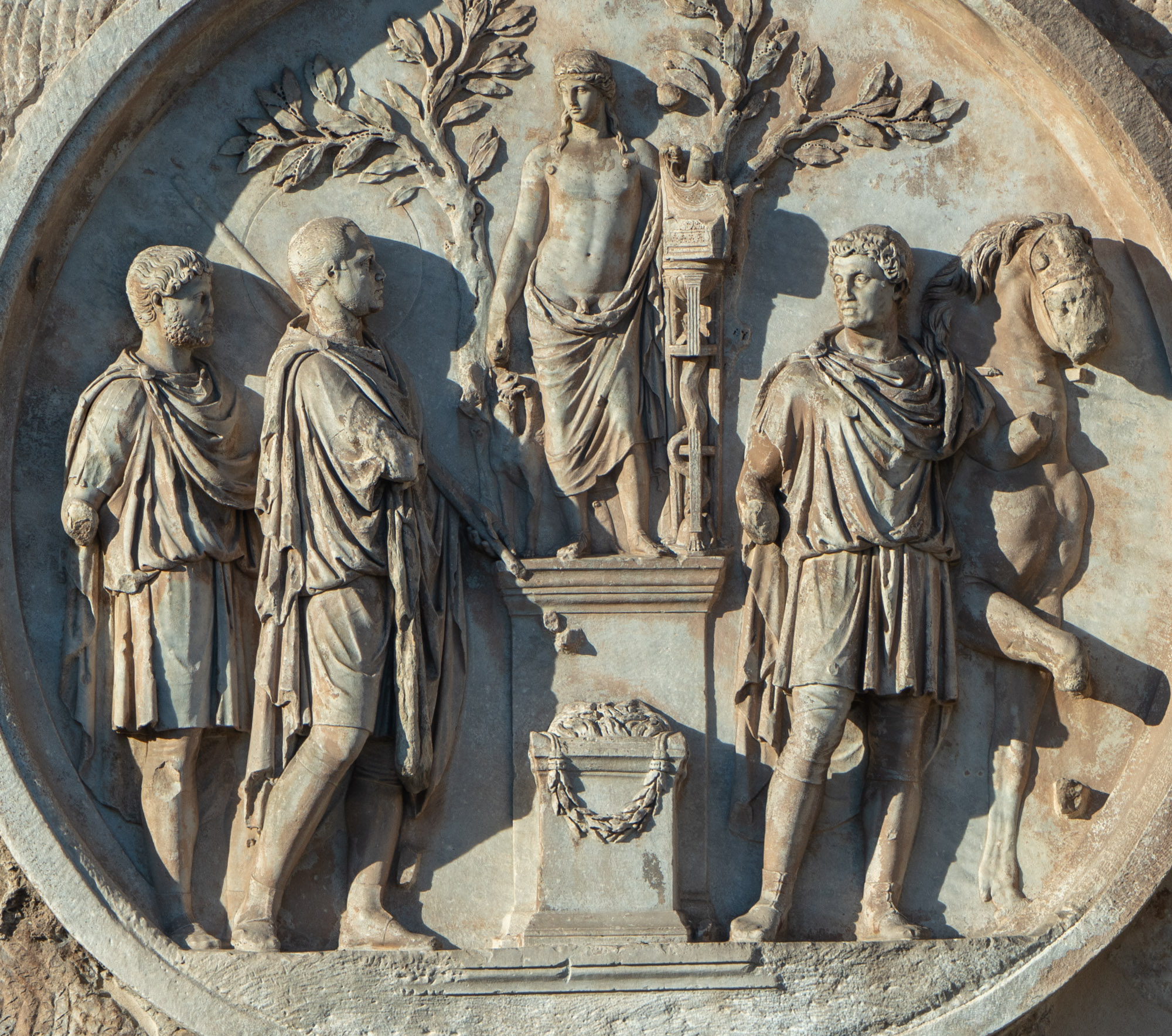 34048 Hadrianischer Tondo auf der Nordseite des Konstantinsbogens: Opfer für Apollo