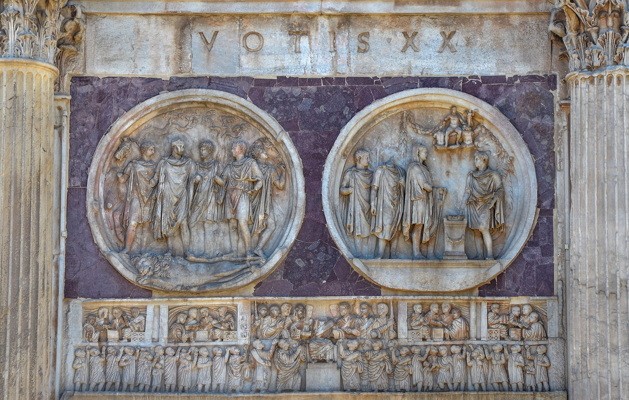 34049 Hadrianischer Tondo auf der Nordseite des Konstantinsbogens: Löwenjagd