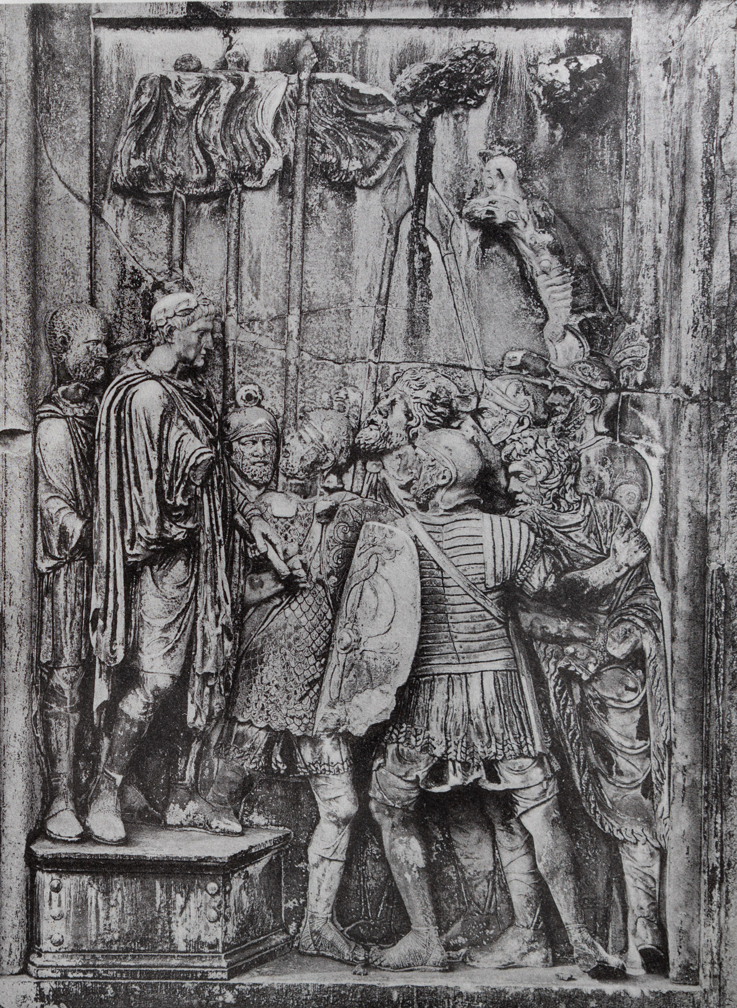 34052 Attikarelief auf der Südseite des Konstantinsbogens: Kriegsgefangene vor Marc Aurel