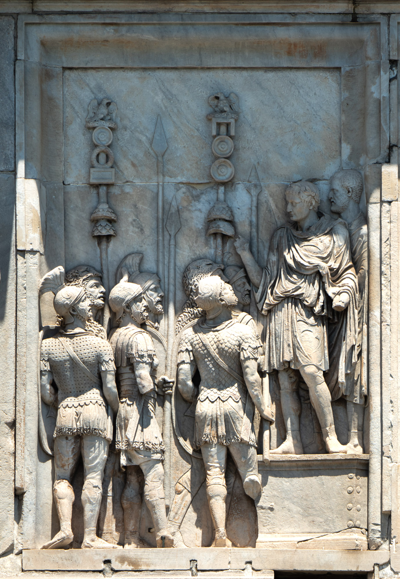 34053 Attikarelief auf der Südseite des Konstantinsbogens: Adlocutio des Marc Aurel