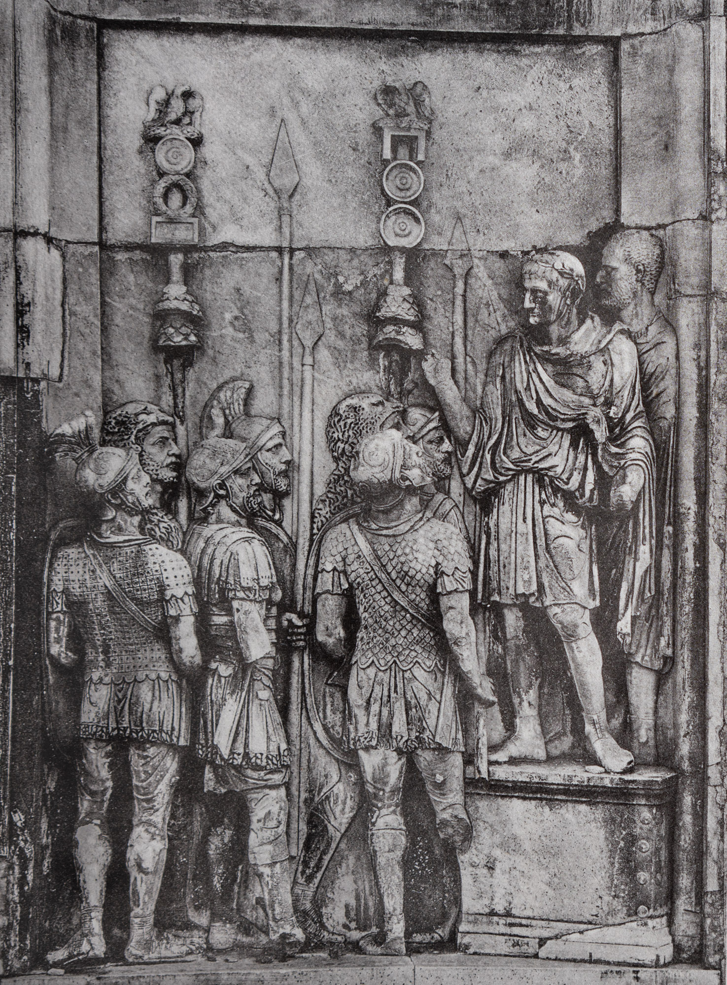 34053 Attikarelief auf der Südseite des Konstantinsbogens: Adlocutio des Marc Aurel