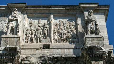 34053 Attikarelief auf der Südseite des Konstantinsbogens: Adlocutio des Marc Aurel