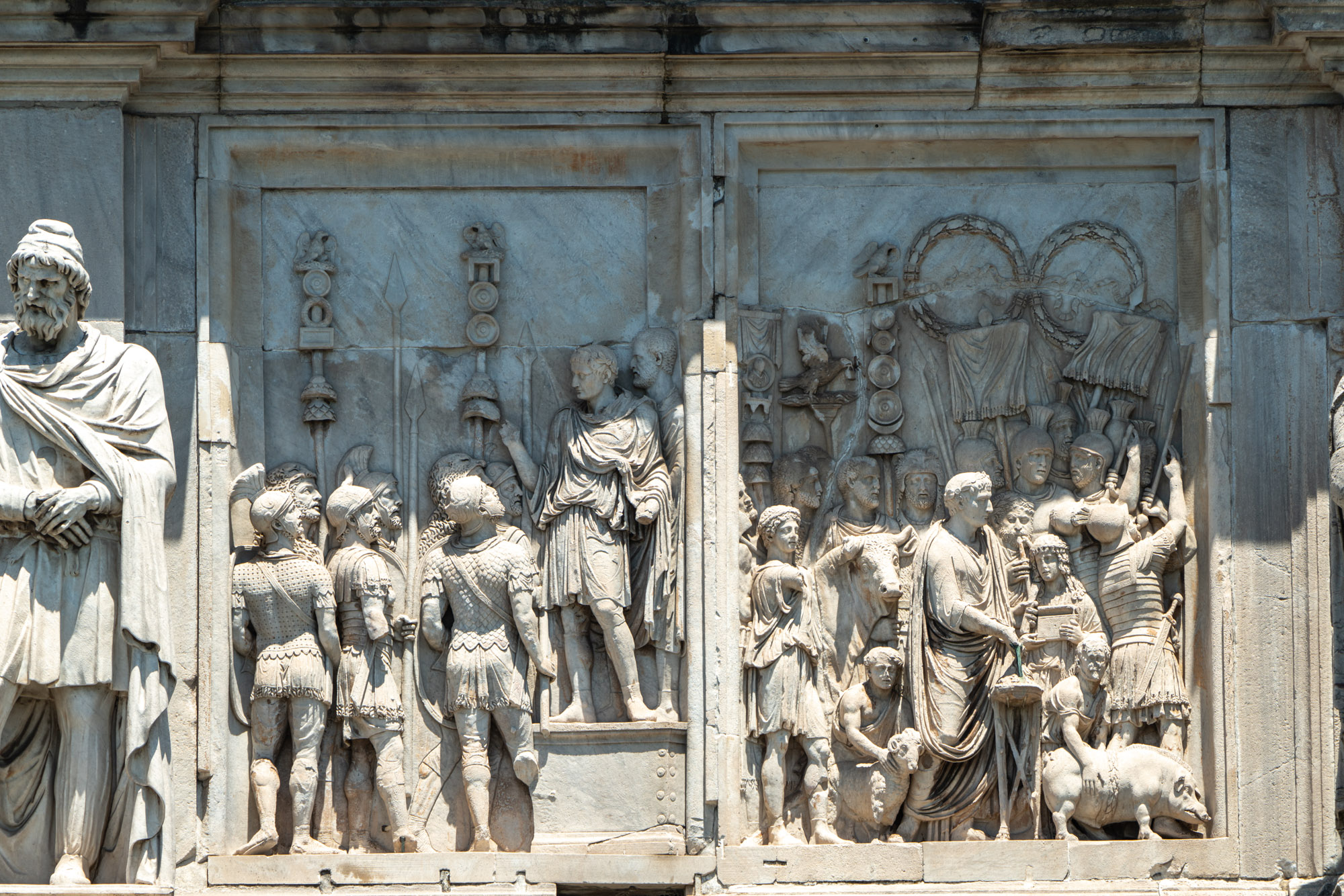 34054 Attikarelief auf der Südseite des Konstantinsbogens: Marc Aurel beim Opfer