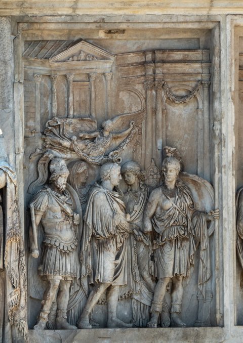 34055 Attikarelief auf der Nordseite des Konstantinsbogens: Adventus des Marc Aurel