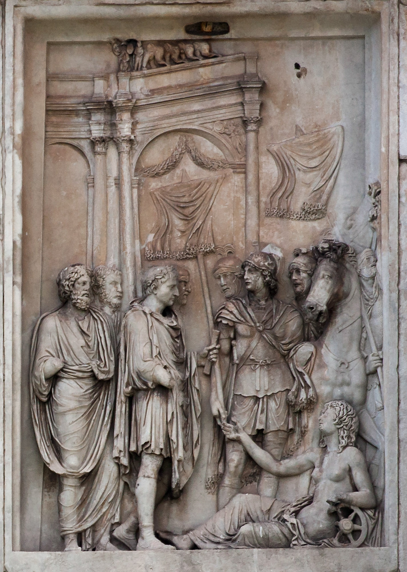 34056 Attikarelief auf der Nordseite des Konstantinsbogens: Profectio des Marc Aurel