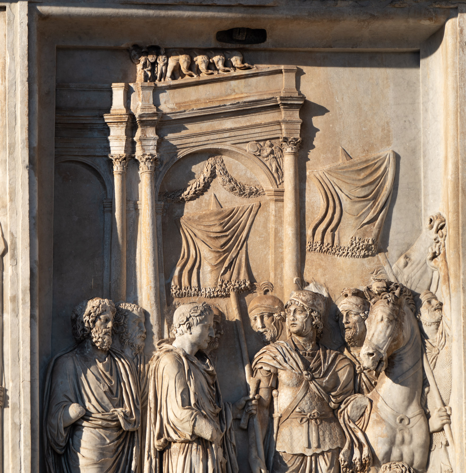 34056 Attikarelief auf der Nordseite des Konstantinsbogens: Profectio des Marc Aurel