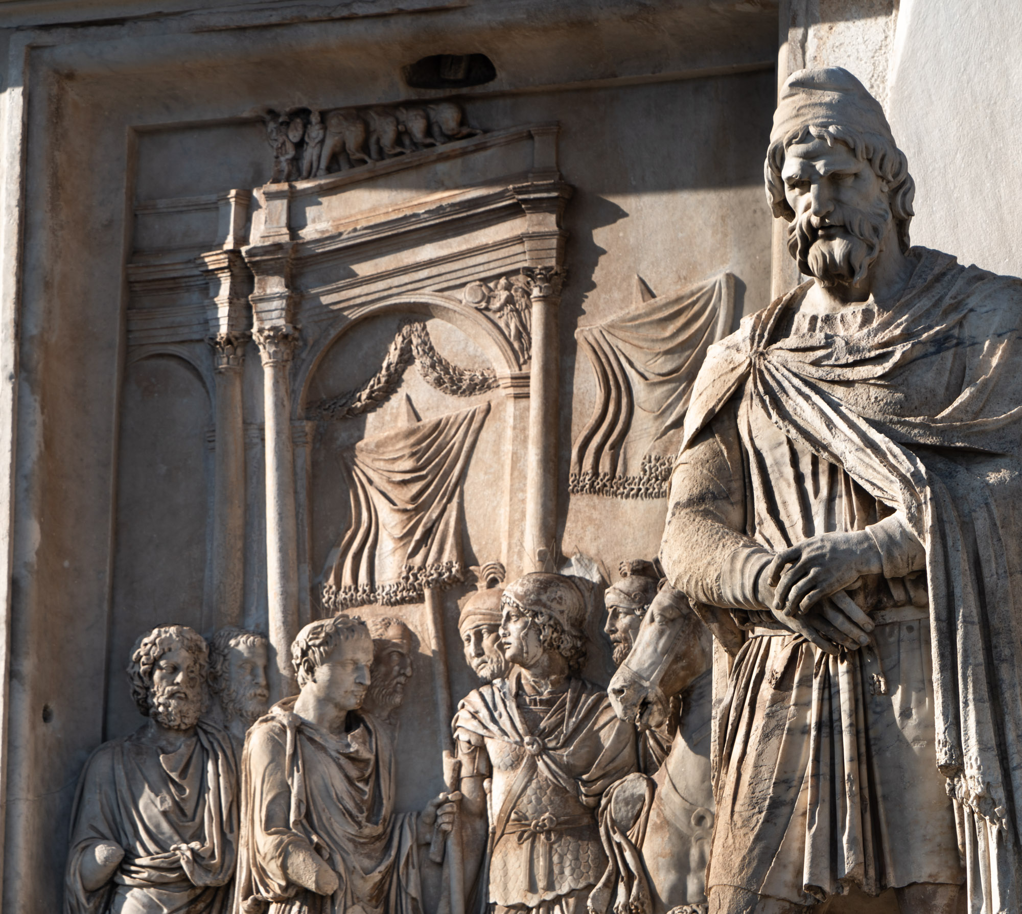 34056 Attikarelief auf der Nordseite des Konstantinsbogens: Profectio des Marc Aurel