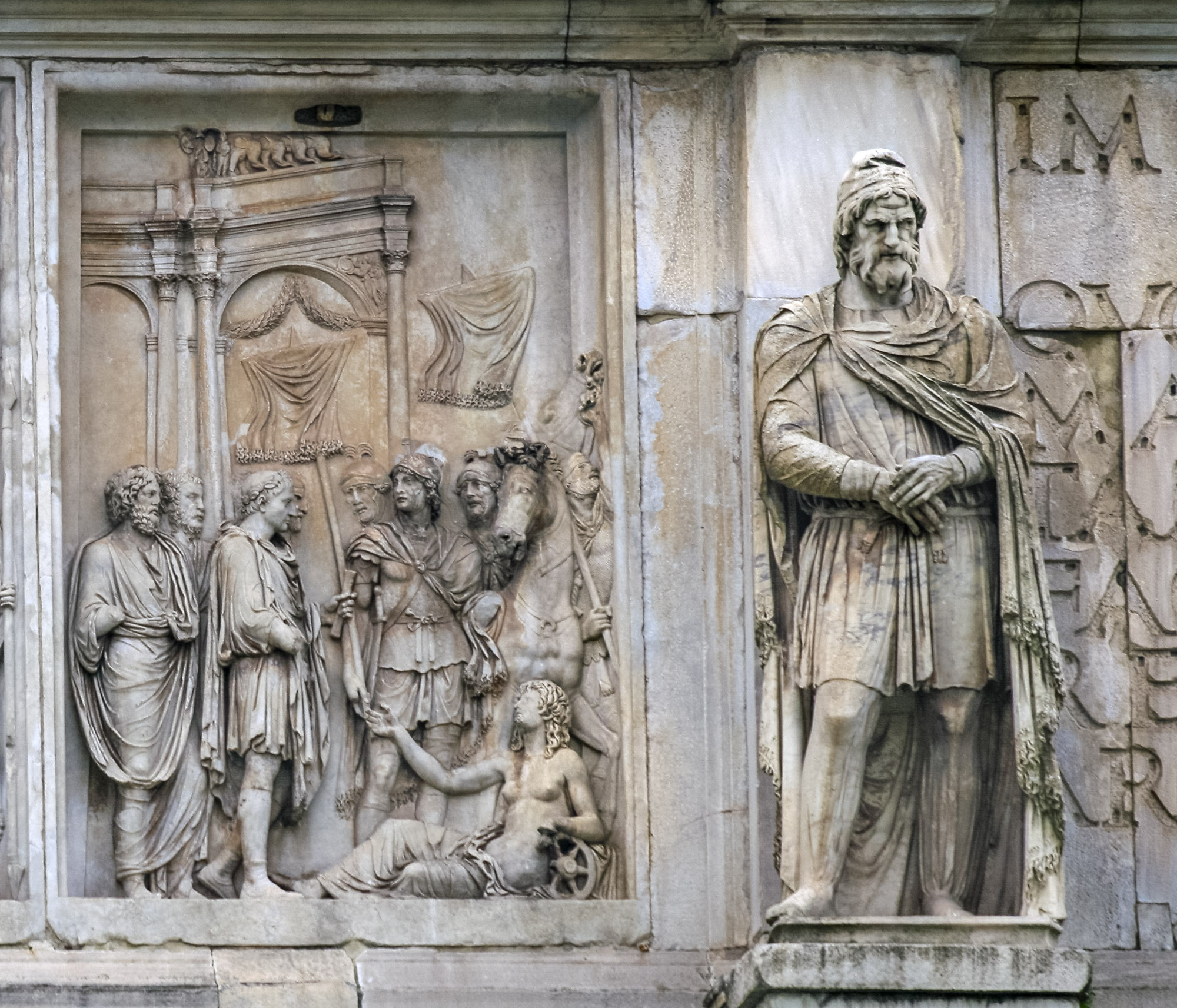 34056 Attikarelief auf der Nordseite des Konstantinsbogens: Profectio des Marc Aurel