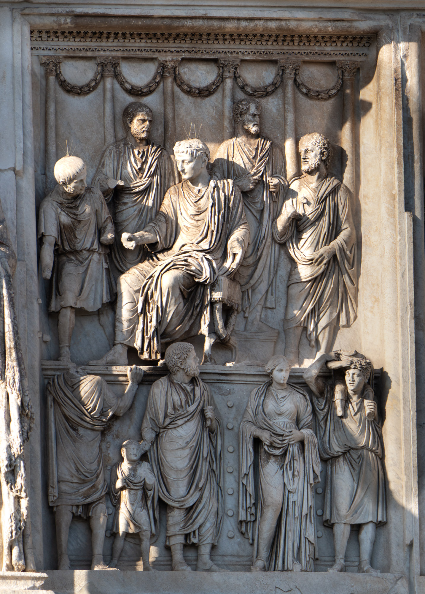 34057 Attikarelief auf der Nordseite des Konstantinsbogens: Congiarium des Marc Aurel