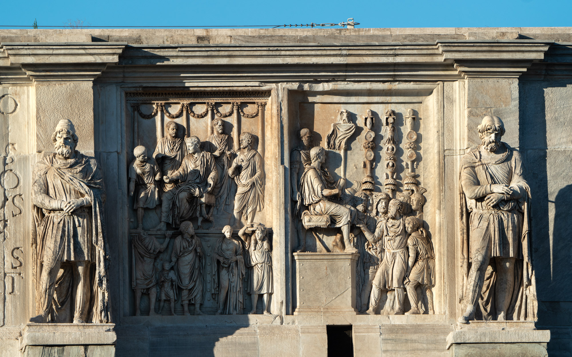 34057 Attikarelief auf der Nordseite des Konstantinsbogens: Congiarium des Marc Aurel