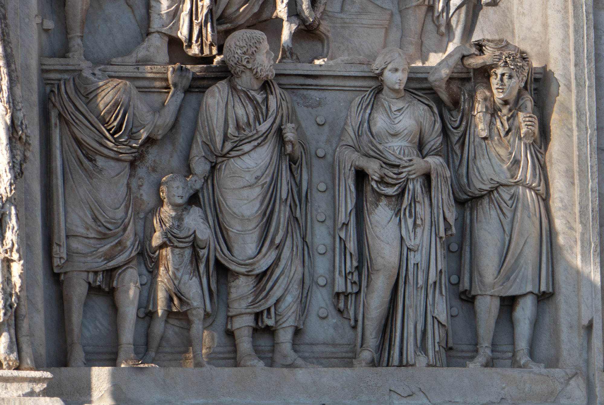 34057 Attikarelief auf der Nordseite des Konstantinsbogens: Congiarium des Marc Aurel