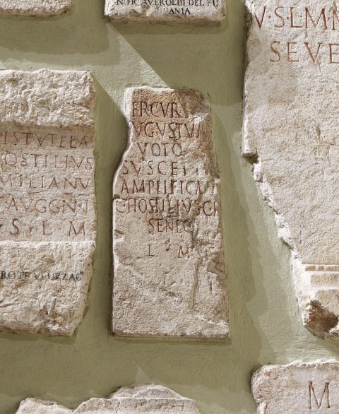 - [M]ercuri[um] / [A]ugustum / voto / suscepto / amplificavi[t] / C(aius) Hostilius C(ai) f(ilius) / Seneca / l(ibens) m(erito)