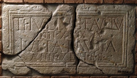 - Ti(berius) Iulius Faustus / ann(orum) XXXXV / Iulia Fausta / ann(orum) XL h(ic) s(iti) s(unt)