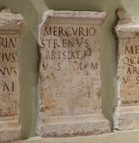 - Mercurio / Strenu(u)s / Brisiae f(ilius) / v(otum) s(olvit) l(ibens) m(erito)
