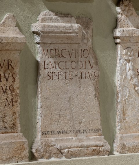 - Mercurio / l(ibens?) M(arcus) Clodiu[s] / Sp(uri) f(ilius) Tertius