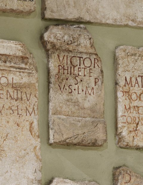 - Victor(iae) / Philete / P(ubli) S() P() / v(otum) s(olvit) l(ibens) m(erito)