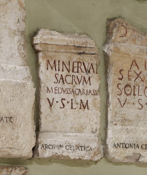 - Minervae / sacrum / Medussa / Cariass[is] / v(otum) s(olvit) l(ibens) m(erito)