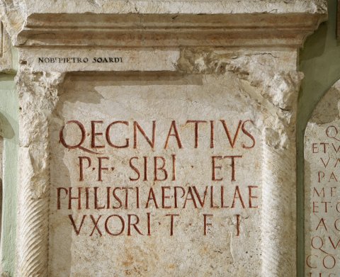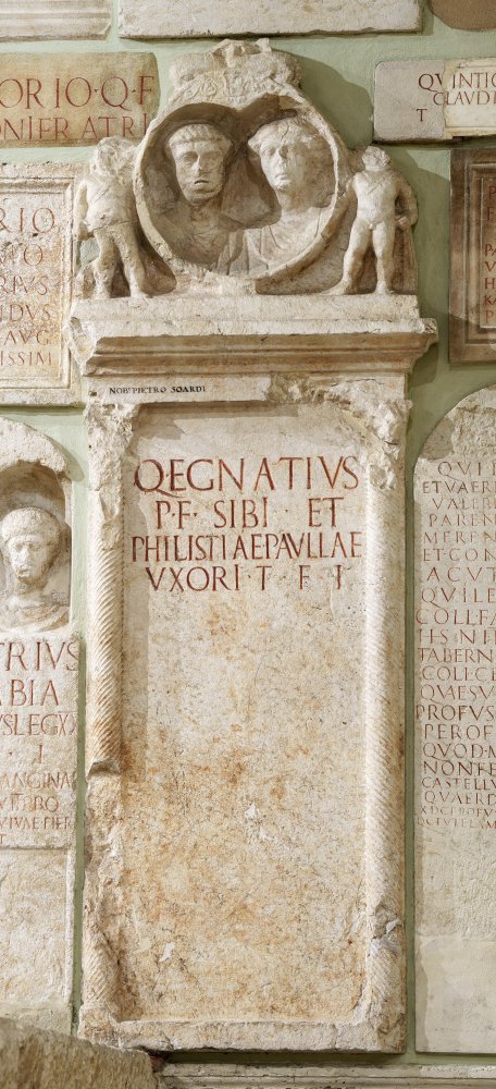 - Q(uintus) Egnatius / P(ubli) f(ilius) sibi et / Philistiae Paullae / uxori t(estamento) f(ieri) i(ussit)