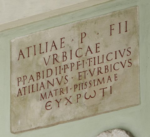 - D(is) M(anibus) / Atiliae P(ubli) fil(iae) / Urbicae / PP(ubli) Abidii PP(ubliorum) ff(ilii) Tilicius / Atilianus et Urbicus / fil(ii) matri piissimae // εὐχρώτι