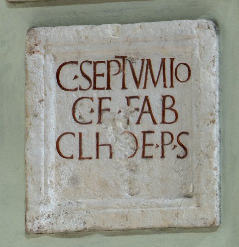 - C(aio) Septumio / C(ai) f(ilio) Fab(ia) / Clhoe(!) p(atrono?) s(uo?)
