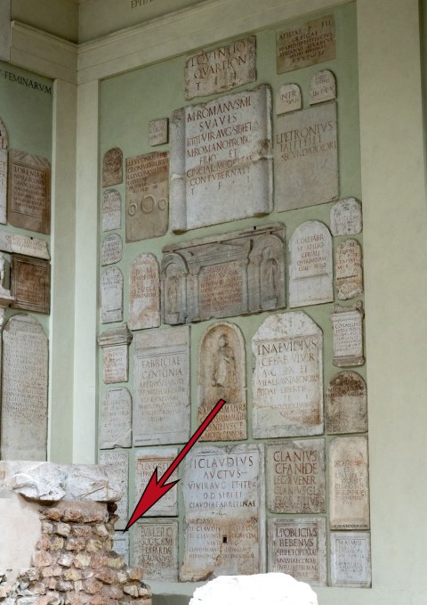 - im Capitolium, mittlerer Raum, rechte Seitenwand, linkes Kompartiment, unten ganz links