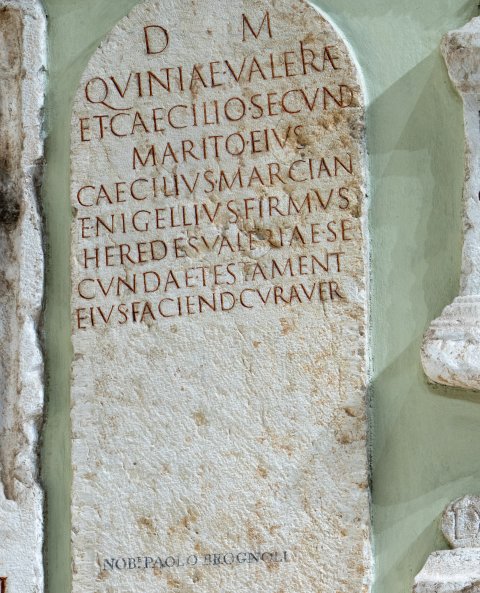 - D(is) M(anibus) / Quintiae Valeriae / et Caecilio Secund(o) / marito eius / Caecilius Marcian(us) / et Nigellius Firmus / heredes Valeri(a)e Se/cundae testament(o) / eius faciend(um) curaver(unt)