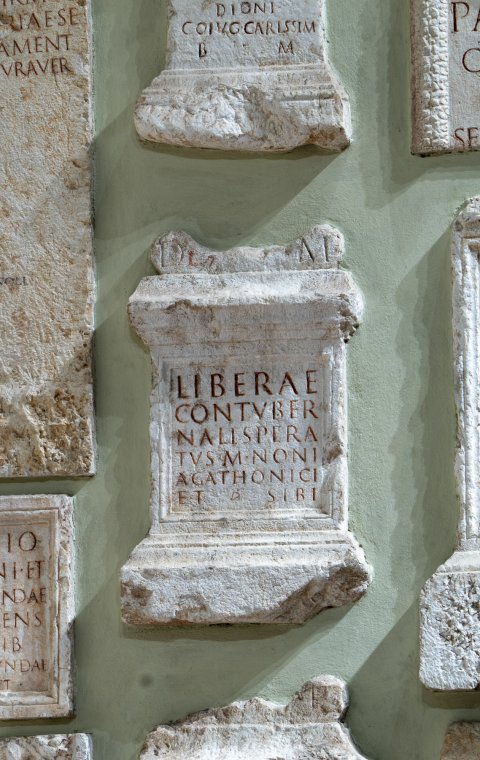 - D(is) M(anibus) // Liberae / contuber/nali Spera/tus M(arci) Noni / Agathonici / et sibi